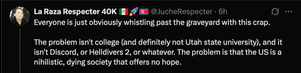 This is the liturgy of a nation that mistakes its own collapse for destiny: